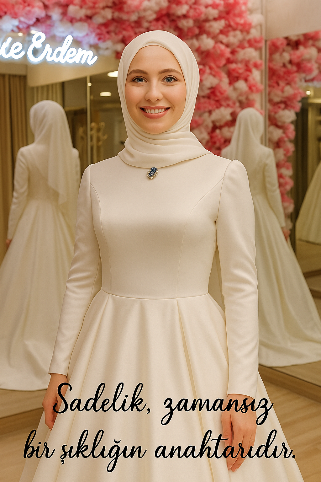 Atölyemize gelen bir gelin adayı düşünün. İlk provada yüzündeki heyecan, dantel kolunu sıvazlarken gözlerinden okunuyor. Sonra hafif bir tebessümle, “Tam aradığım sadelik bu…” diyor. İşte o an, sadeliğin gücü bir hikâyeye dönüşüyor.
