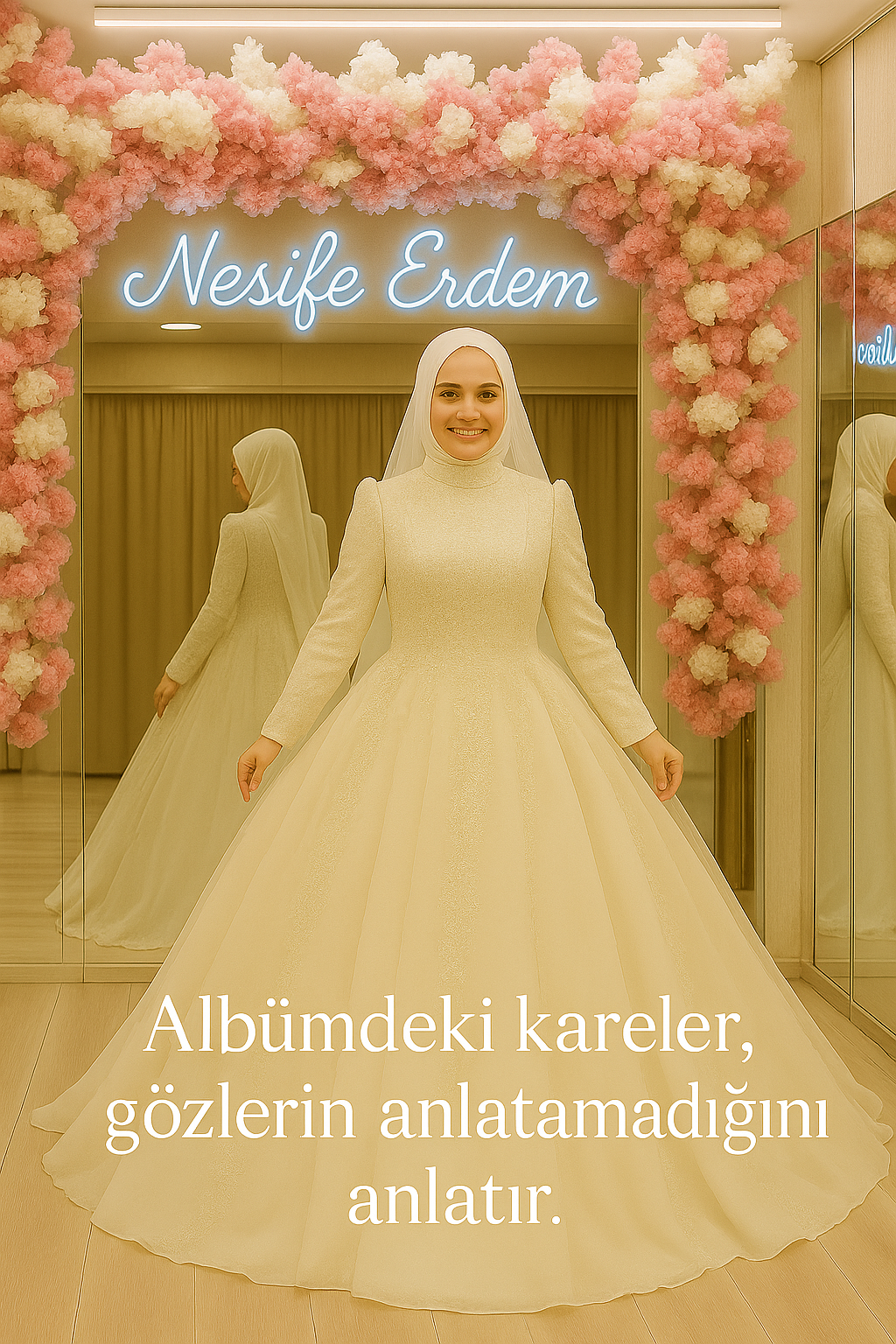 Bir fotoğraf, kimi zaman kelimelerin gücünü aşar. Bazen bir bakış, bir el hareketi, bir duvak dalgası bin kelimenin söyleyemediğini söyler. Nesife Erdem Gelinlik’te hazırlanan her albüm, sadece bir çekim değil; bir hikâyenin kalbe işleyen anı halidir. Çünkü biz inanıyoruz ki; albümdeki kareler, gözlerin anlatamadığını anlatır.