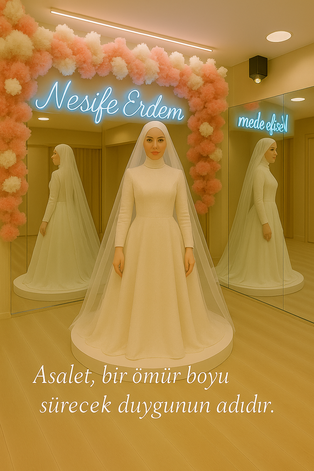 Asalet, bir ömür boyu sürecek duygunun adıdır. Her gelin kendi masalını bu duygu ile yazmalı, her adımıyla zarafetin izini bırakmalıdır. Biz, sadece o duyguyu görünür kılıyoruz; siz, onu bir ömür boyu taşıyorsunuz. Ve belki de bu yüzden, asalet hiçbir zaman modası geçmeyen bir duygudur — çünkü kalpten gelir.
