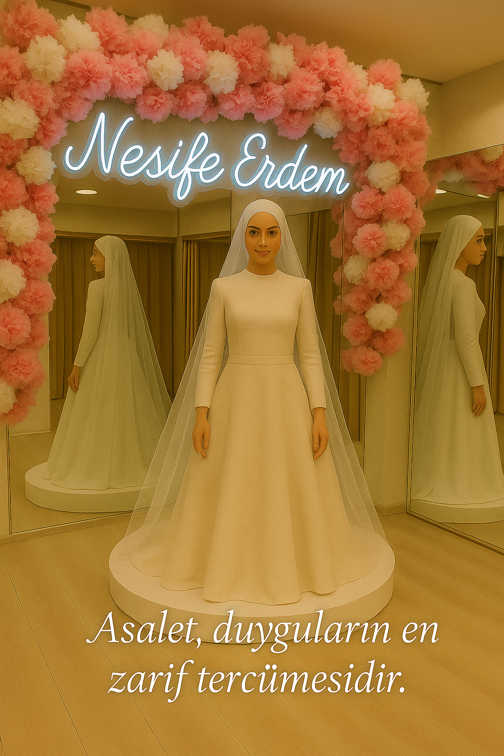 Nesife Erdem Gelinlik’te biz, trendlerin peşinde koşmak yerine kalıcı duyguların izinden gideriz. Çünkü trendler geçer, ama hisler kalır. Her gelin, kendi hikayesini yazarken biz yalnızca o hikayenin zarif satırlarını oluştururuz. Gelinlik kumaşıyla, danteliyle, kesimiyle o duygunun tercümanıdır.