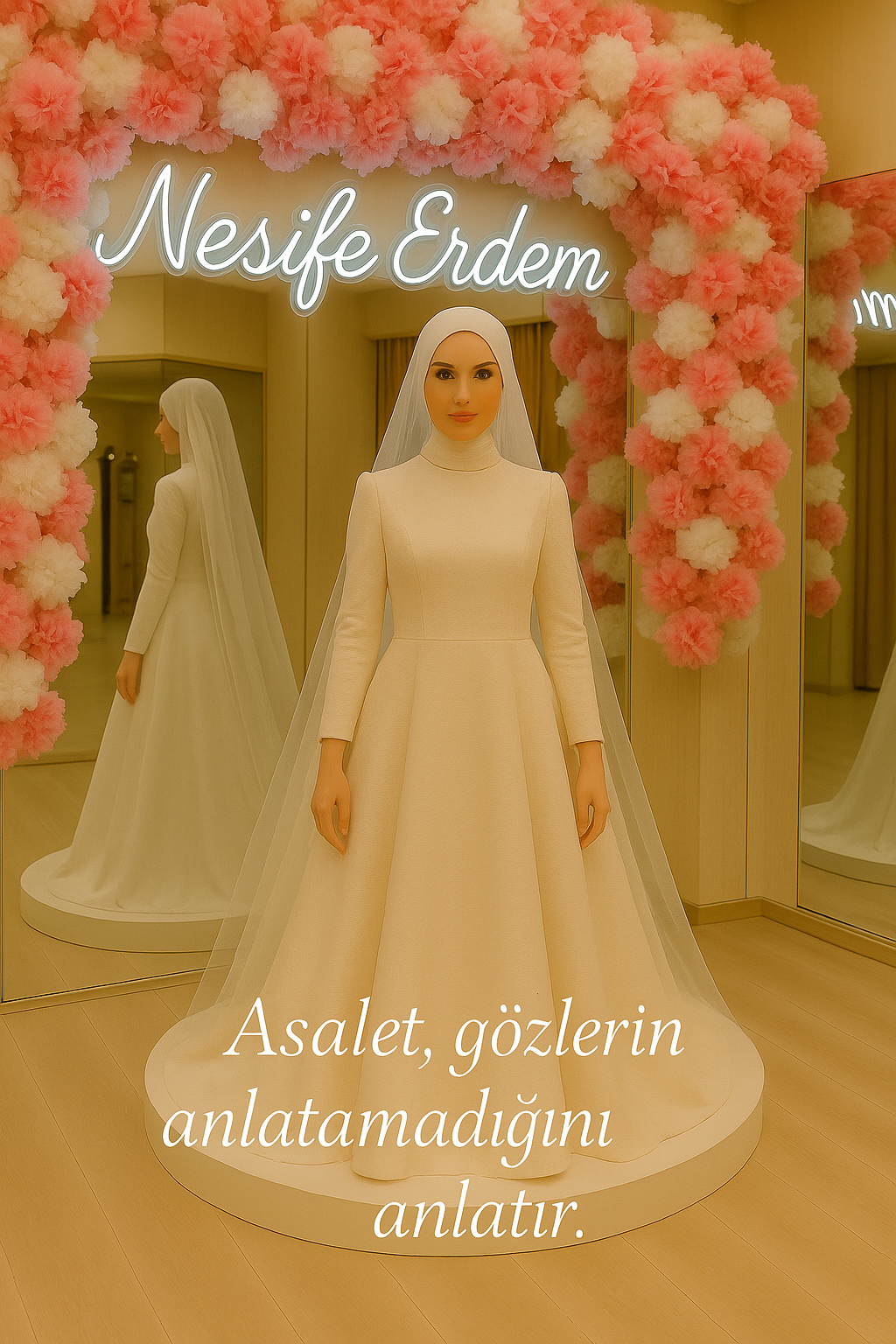 Bazen kelimeler yetersiz kalır… Bir bakış, bin duyguyu içinde taşır. İşte “Asalet, gözlerin anlatamadığını anlatır...” sözünün ruhu da tam burada saklıdır. Nesife Erdem Gelinlik, her tasarımında bu derinliği, bu sessiz ama güçlü duyguyu işlemeyi seçer. Çünkü bir gelinlik yalnızca bir kumaş değildir; bir duygunun, bir anın, bir hayat hikâyesinin zarif tercümanıdır.