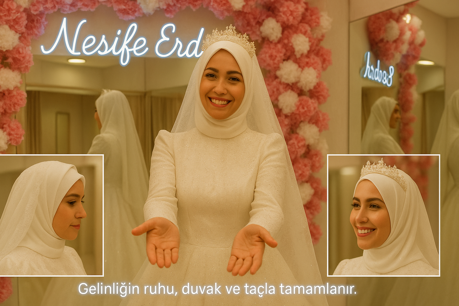 Her gelinlik, kendi başına bir hikâye taşır. Kumaşı, işçiliği, kesimi… Ama o hikâyeyi masala dönüştüren ayrıntılar, çoğu zaman duvak ve taç gibi aksesuarlarla hayat bulur. Nesife Erdem Gelinlik atölyemizde, her gelin adayının bu büyülü yolculuğunu şahitlik ederek görüyoruz: duvak ve taç, yalnızca aksesuar değildir, gelinliğin ruhunu tamamlayan iki kutsal dokunuştur.