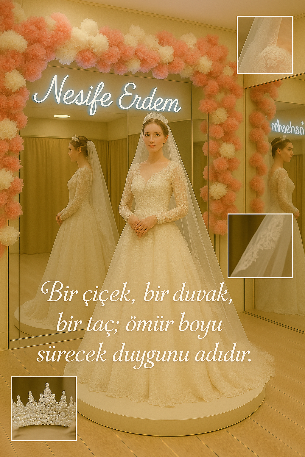 Bir çiçek, bir duvak, bir taç; ömür boyu sürecek duygunun adıdır ve gelinliğin en ilk ânında, insanın içini ısıtan o sonsuzluk hissini sessizce görünür kılar. Çünkü gelinlik, yalnızca bir gün giyilen bir parça değil; sevdayı, aile olmayı, yeni bir yola birlikte çıkmayı anlatan zarif bir hatıradır. Nesife Erdem Gelinlik’te bu hatırayı couture diliyle dokuruz: her dantel, her katman, her ilmek gelinin kalbinde taşıdığı duyguyla aynı ritimde atar. Bu yüzden tasarımlarımız, “güzel görünmek”ten öte, “kendini tamamlanmış hissetmek” için vardır. Romantik couture tonumuzun izini www.nesifeerdemgelinlik.com adresindeki koleksiyonlarımızdan takip edebilir, atölye sıcaklığını ve gerçek gelinlerimizin hikâyelerini de https://www.instagram.com/nesifeerdemgelinlik üzerinden hissedebilirsiniz.