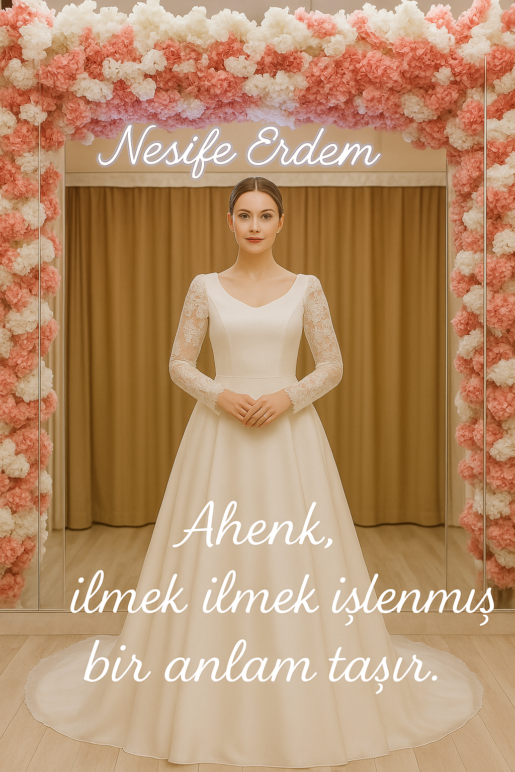 Nesife Erdem Gelinlik couture imajı; el işçiliği, özel dikim ve prova disipliniyle şekillenen romantik–duygusal bir zarafet dili kurar. Tesettür couture çizgisinde modern-sade dengeyi korurken, nikah/kına ve düğün için zamansız bir silüet evreni sunar. #bursa