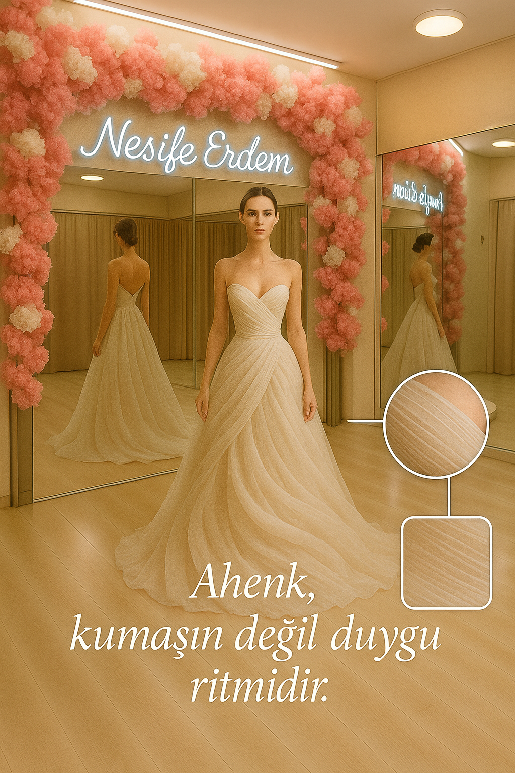 Tesettür couture yaklaşımı; özel dikim prova sürecinde silüet dengesini kurar, el işçiliğiyle bitiriş kalitesini yükseltir ve modern-sade çizgide zamansız bir görünüm hedefler. Bursa merkezli atölye disiplininde şekillenen bu couture dili, 2026 bağlamında da ahenk ve zarafeti aynı ritimde taşır; #KışSezonuCouture, #BursaÖzelDikim ve #TesettürCoutureZarafeti ile akışını tamamlar.