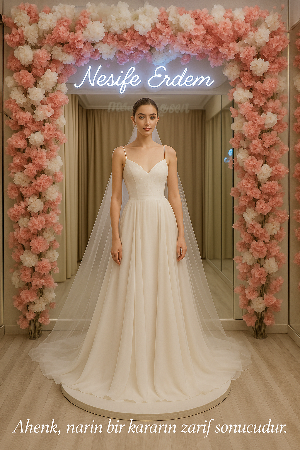 Nesife Erdem Gelinlik couture evreni; tesettür couture odağında el işçiliği, özel dikim kalıp ve prova disipliniyle ahenkli kararları görünür kılar. Modern-sade çizgiden romantik dokulara uzanan bu yapı, nikah/kına ritüellerinde tek bir couture dili sunar ve büyük beden çalışmalarda konforu estetikle dengeler. Tasarım yaklaşımını bütüncül olarak incelemek için koleksiyon evreni üzerinden ilerleyebilir, sürecin sezgisel tarafını ilham dünyası akışında hissedebilirsiniz. 2026 geçişinde öne çıkan minimal romantizm ve karar odaklı couture yaklaşımı, #atelierdecision, #moderncouture ve #bursabridal duyarlıklarıyla doğal biçimde tamamlanır.