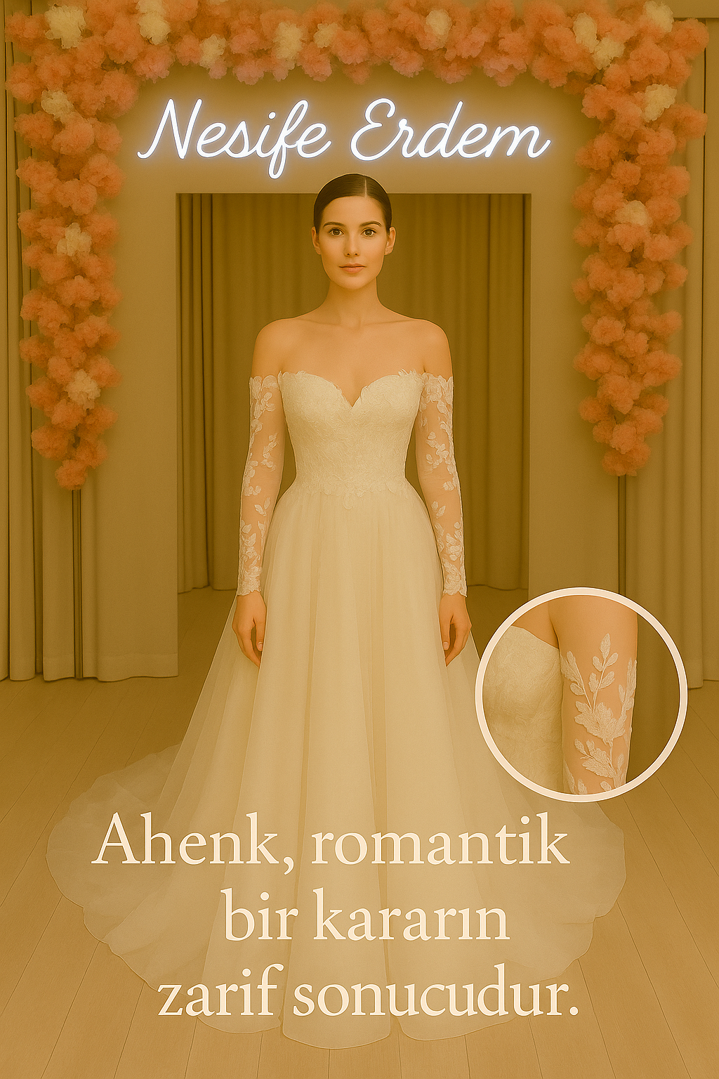 Tesettür couture odağında el işçiliği, özel dikim ve prova disiplinini bir araya getiren Nesife Erdem Gelinlik couture evreni; romantik dokuyu modern-sade netlikle dengeler. Nikah/kına geçişlerinde parça uyumu ve büyük beden oran yönetimiyle ahenk korunur; 2026 ruhunda sakin lüks hissi #SezonGecisi yaklaşımıyla #ModernSadeCouture ve #TesetturCouture çizgisinde doğalca tamamlanır.
