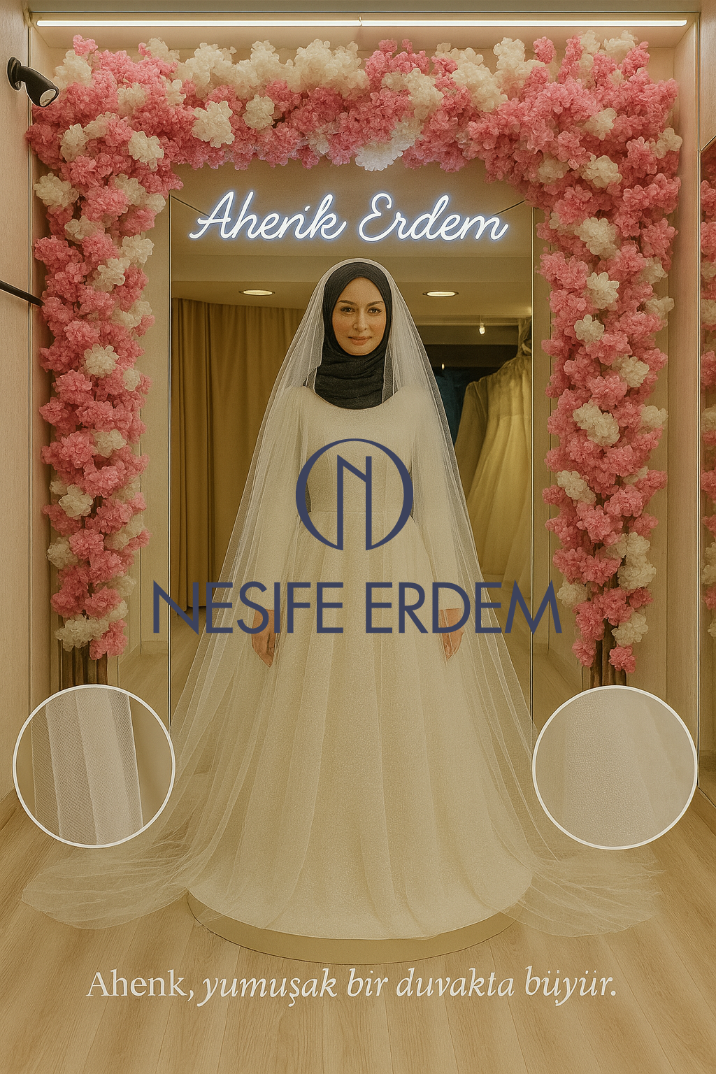 Yumuşak duvaklarla dengelenen couture silüetler, el işçiliği ve özel dikim anlayışıyla tamamlanır. Ahenk, modern-sade estetik içinde doğal biçimde büyür. #özelDikim #elİşçiliği
