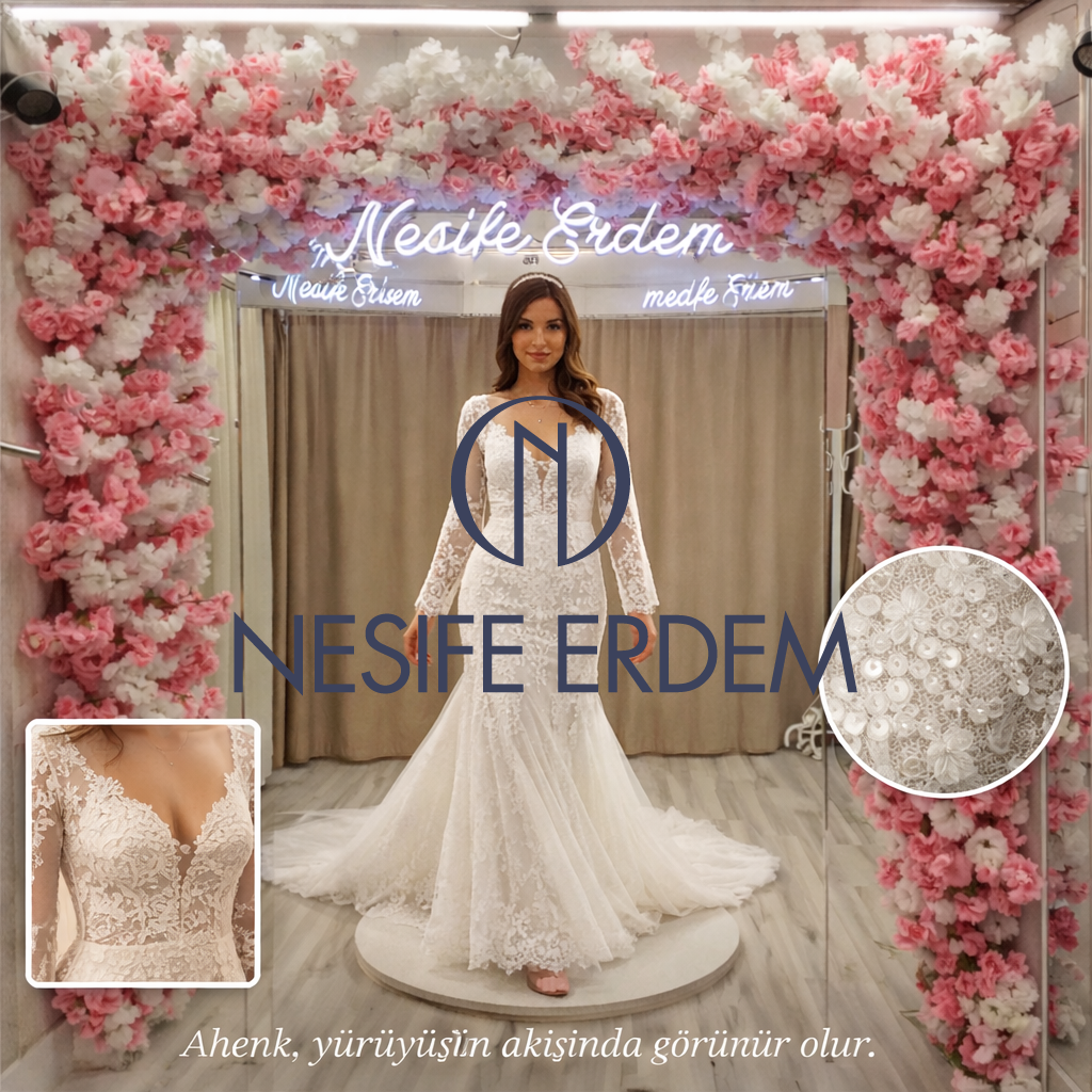 Nesife Erdem Gelinlik couture evreni; el işçiliği, özel dikim ve prova disiplininin tek bir dengede buluştuğu bir tasarım anlayışı sunar. Her siluet, yürüyüşle uyumlanan modern-sade çizgi üzerine inşa edilir. Bu yaklaşım, koleksiyon evreni içinde farklı beden ve ritüellere uyarlanırken; tasarımın görsel anlatımı ilham dünyası üzerinden derinleşir. Metnin doğal akışında couture, ahenk ve tesettür couture kavramları; 2026’nın deneyim odaklı tasarım bakışıyla birlikte yer alır #couture #özelDikim #modernSade