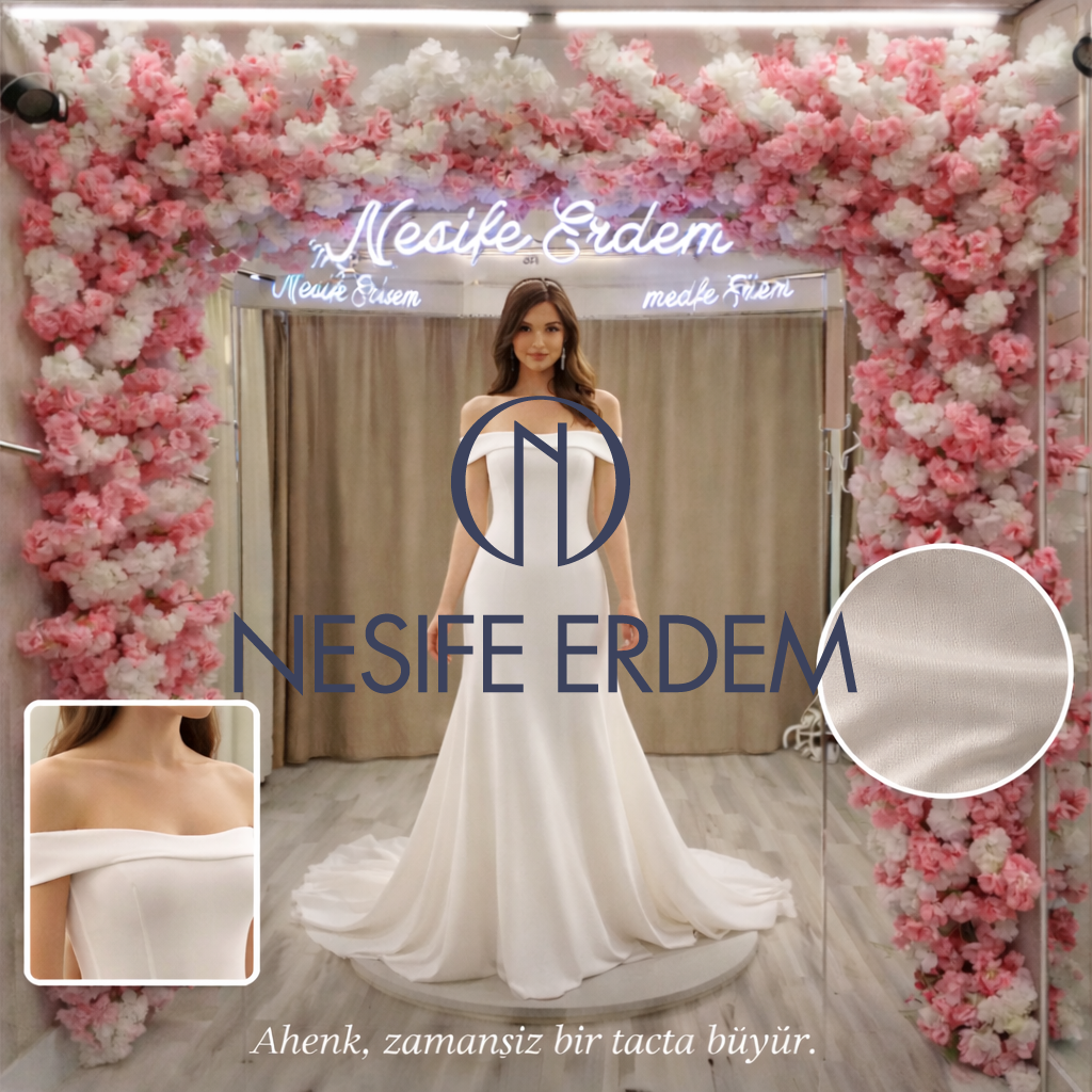 Nesife Erdem Gelinlik couture evreni, taçtan siluete uzanan dengeli bir tasarım dili sunar. El işçiliği, prova süreci ve modern-sade çizgiyle ahenk doğal biçimde tamamlanır.