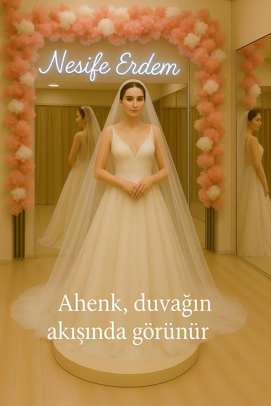 Nesife Erdem Gelinlik couture yaklaşımı, kişiye özel kalıp ve el işçiliğiyle her gelinin hikâyesini zamansız bir siluete dönüştürür. Duvak, kumaş ve detay uyumu; romantik ama modern bir ahenk içinde birleşir. couturegelinlik, duvakakis, romantikzarafet