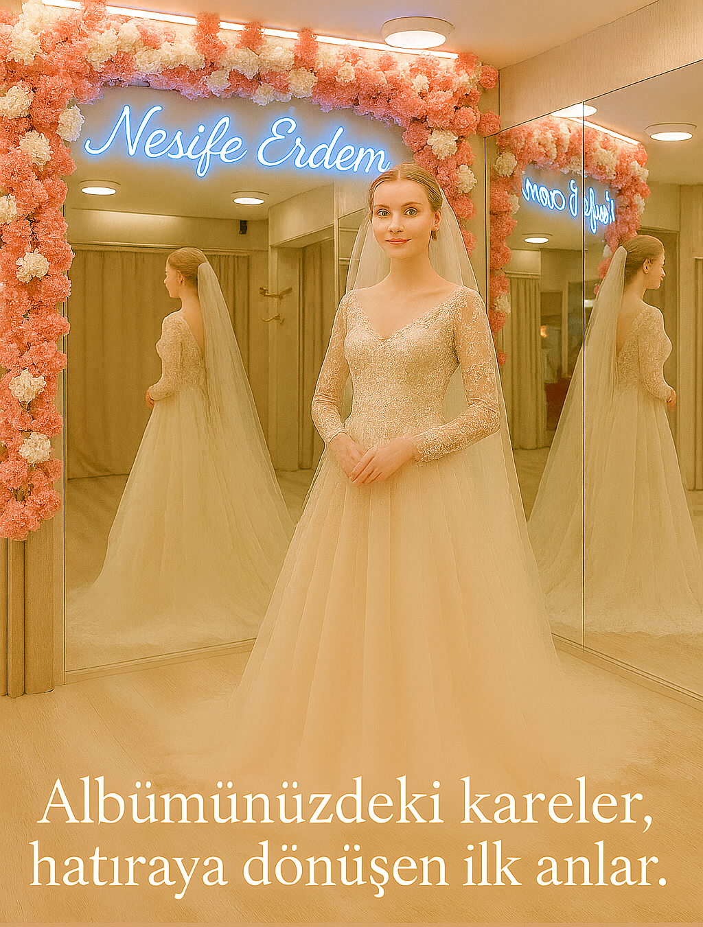 Her albüm, bir hikâyenin en sessiz anlatıcısıdır. Işığın en doğru açıyla yansıdığı, kalbin en derin duygusunu yakaladığı o kareler… İşte “ilk anların” anlamı tam da burada başlar. Her gülümsemede bir umut, her bakışta bir söz saklıdır. Nesife Erdem Gelinlik olarak biz, bu anların büyüsünü sadece kaydetmiyor; onu bir sanat eserine dönüştürüyoruz.