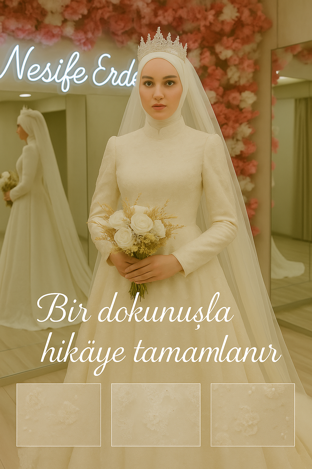 “Dokunduğunuzda kalbinize işleyen zarafet: Nesife Erdem 2026 Koleksiyonu ile gelinliklerde konfor, estetik ve ilham veren detayları keşfedin.”#Hashtag: #TesettürlüGelinlik #2026Koleksiyon #SwarovskiTaş #FransızDantel