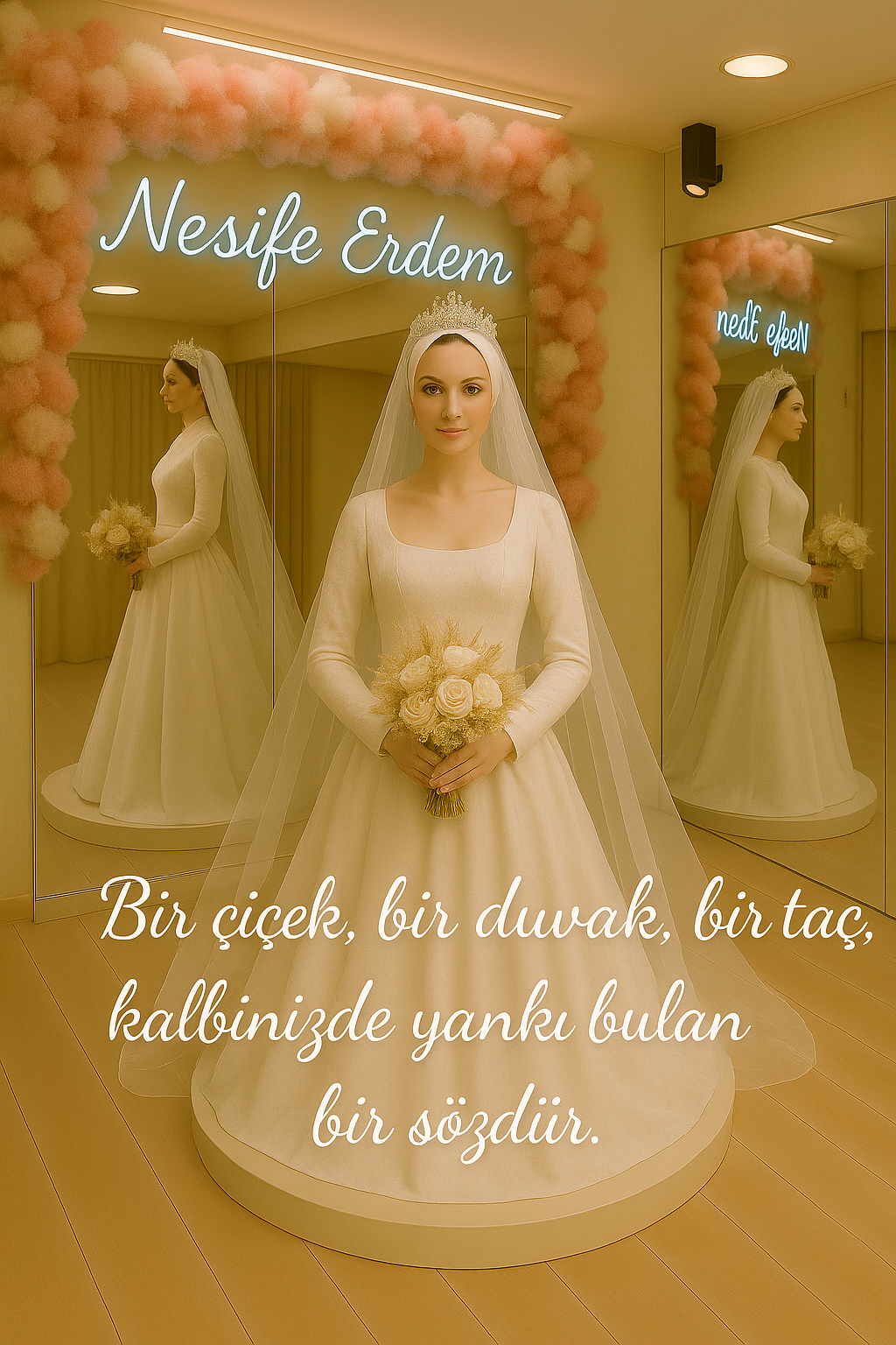 Bu masalın bir parçası olmak ve kendi zarafet yolculuğunuza adım atmak isterseniz, tüm koleksiyonumuza www.nesifeerdemgelinlik.com üzerinden ulaşabilir, atölyemizin romantik anlarına ise instagram.com/nesifeerdemgelinlik üzerinden eşlik edebilirsiniz; aşkın nefesini taşıyan bu yolculukta gelinliğiniz, duvağınız, tacınız ve çiçeğinizin sessiz dokunuşu masalın ritmine karışırken safışık bridalwhispers moderncouturemood kalpyankısı zarafetakışı gelinlikhikâyesi masalınışığı.